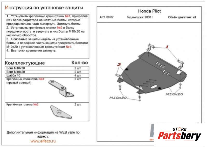 Защита двигателя металлическая к Honda Pilot 2, 2010