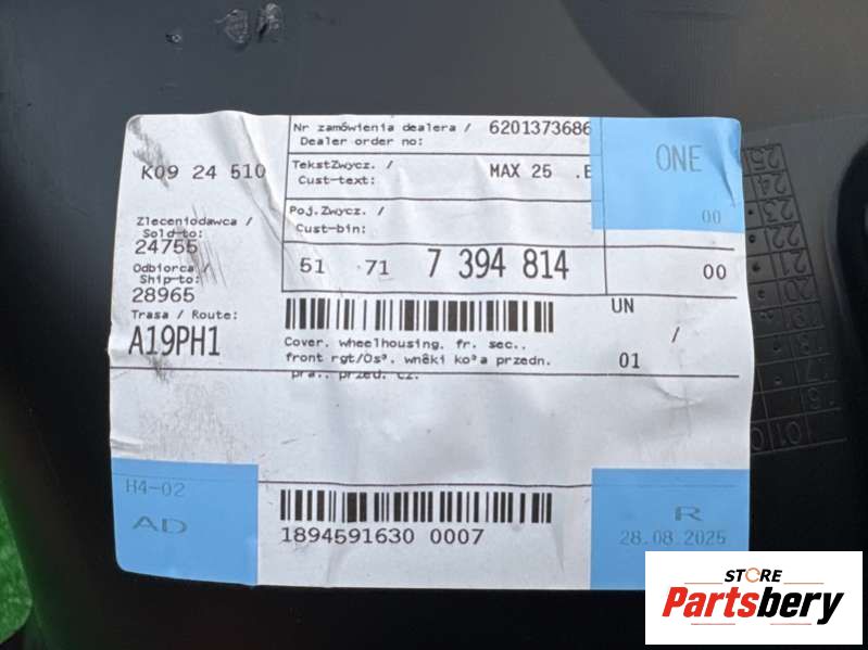 Защита арок передняя правая (подкрылок) к BMW X4 G02, 2024