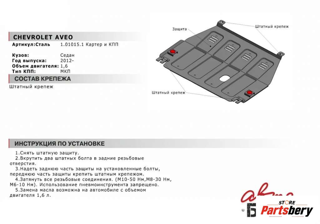 Защита двигателя к Chevrolet Aveo(T300), 2013