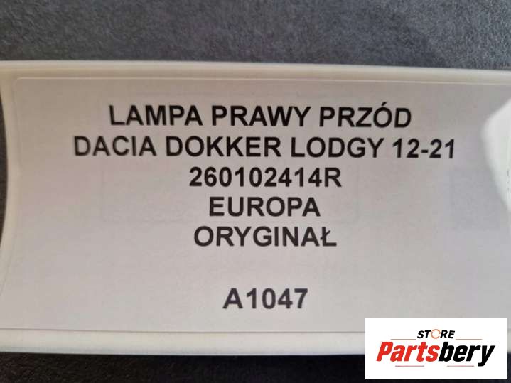 Фара правая к Dacia Dokker 1 поколение (2012-2024), 2012