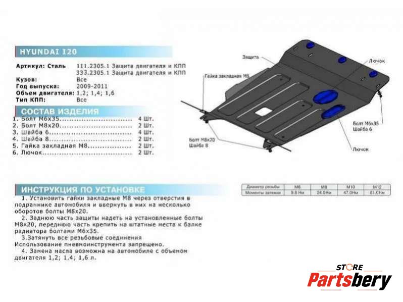 Защита двигателя к Hyundai i20(2008-2012), 2008
