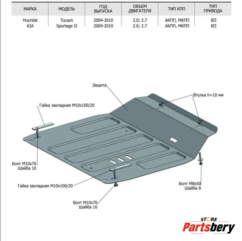 Защита двигателя к Hyundai Tucson 1 (2004-2010) Внедорожник 5дв., 2005