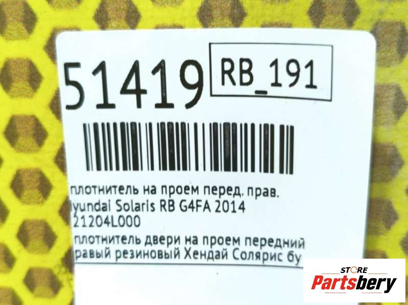 Уплотнитель на проем к Hyundai Solaris RB, 2014