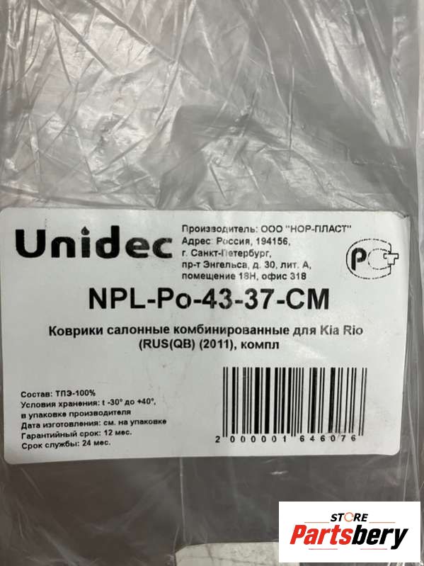 К-кт ковриков салона к Kia Rio 3 QB, 2011