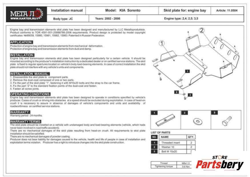 Пыльник двигателя Kia Sorento 1