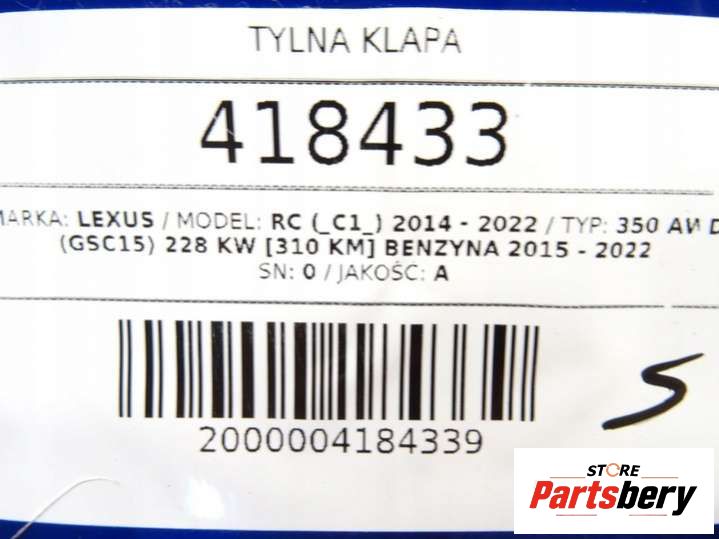 Крышка багажника (дверь 3-5) к Lexus RC 1 поколение (2014-2024), 2014           - Артикул: 147987916