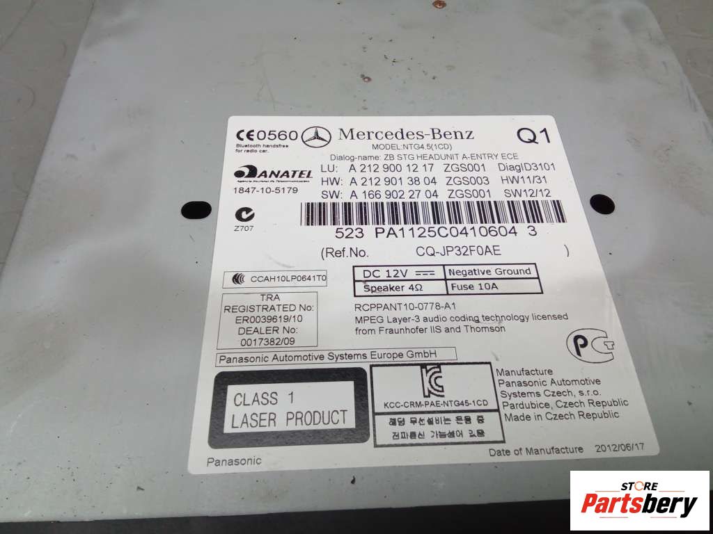 Магнитола Mercedes-Benz A212900390880 к MERCEDES-BENZ E-CLASS W212 01/2009 - 12/2016, 2013