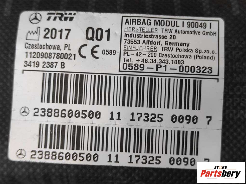 Подушка безопасности боковая (в дверь) Mercedes E W238