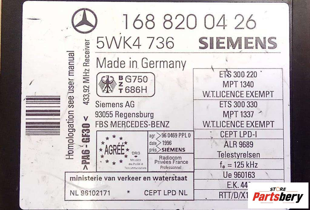 Иммобилайзер к Mercedes A W168 Минивэн, 1999