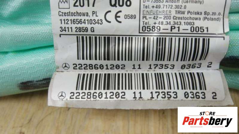 Подушка безопасности боковая (шторка) левая Mercedes-Benz A2228601202 к MERCEDES-BENZ S-CLASS W222, V222, X222 05/2013 -, 2018