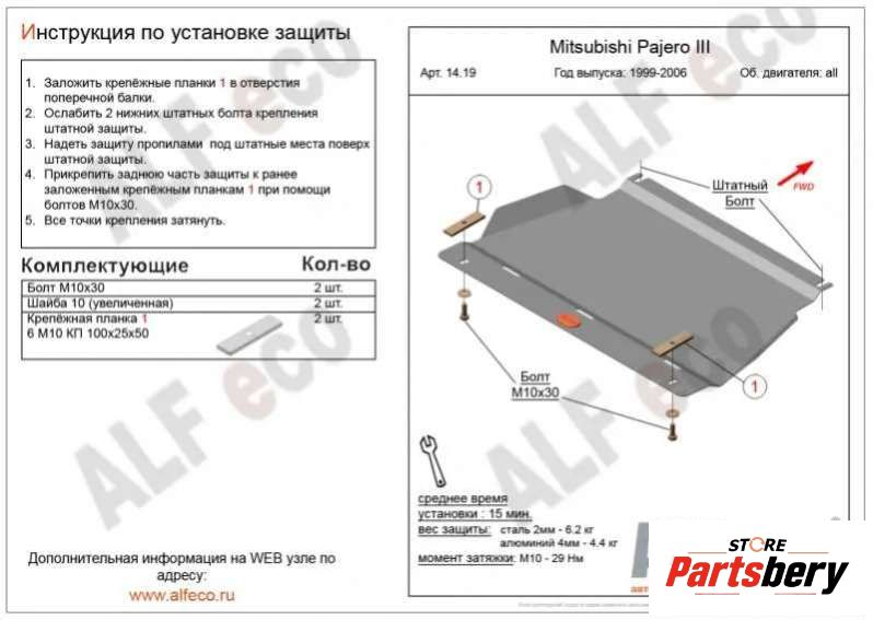 защита двигателя к Mitsubishi Pajero III, 2001