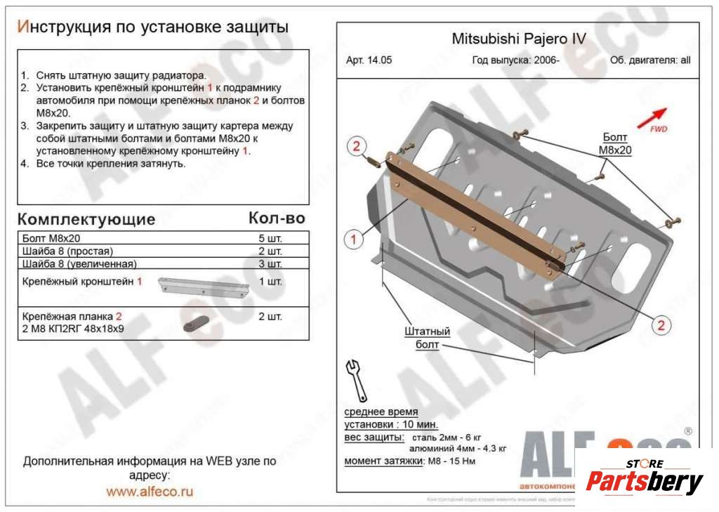 Защита двигателя металлическая к Mitsubishi Pajero 4 restailing, 2011
