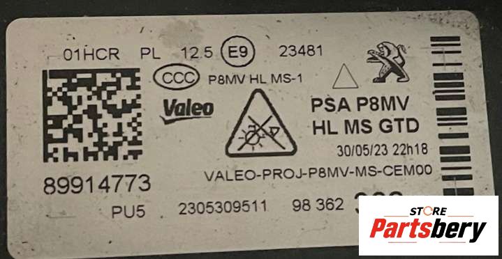 Фара передняя правая Peugeot 3008