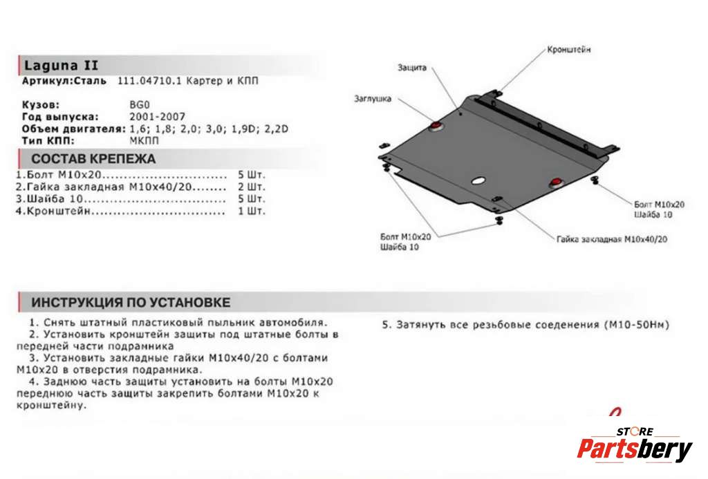 Защита двигателя Renault Laguna (2008-2015) 310934 к Renault Laguna, 2010