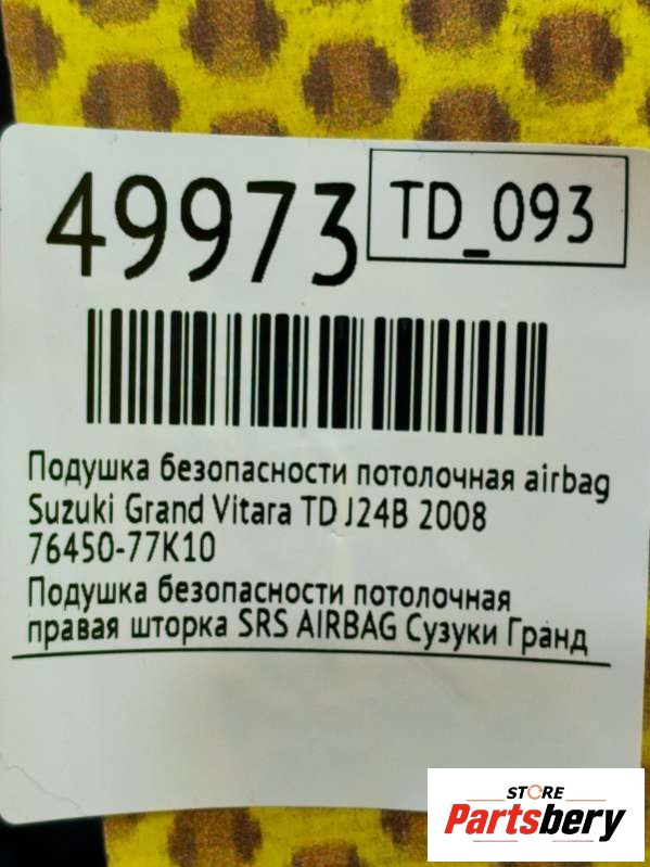 Подушка безопасности потолочная AIRBAG SRS к Suzuki Grand Vitara TD, 2008