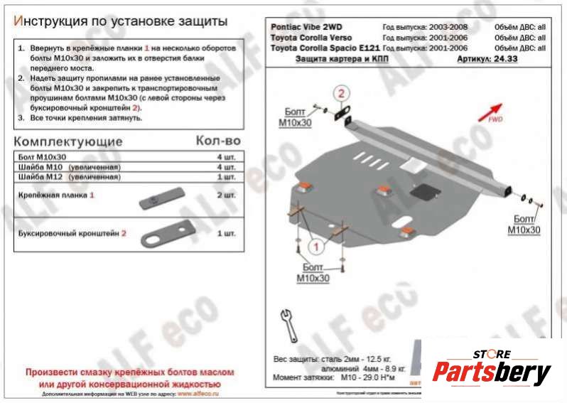 защита двигателя к Toyota Matrix II, 2010
