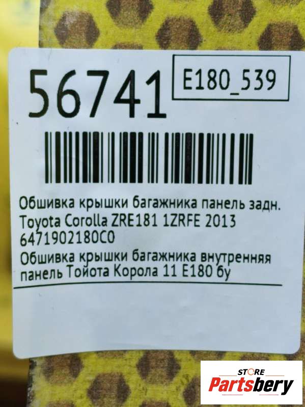 Обшивка крышки багажника панель к Toyota Corolla ZRE181, 2013