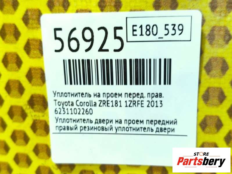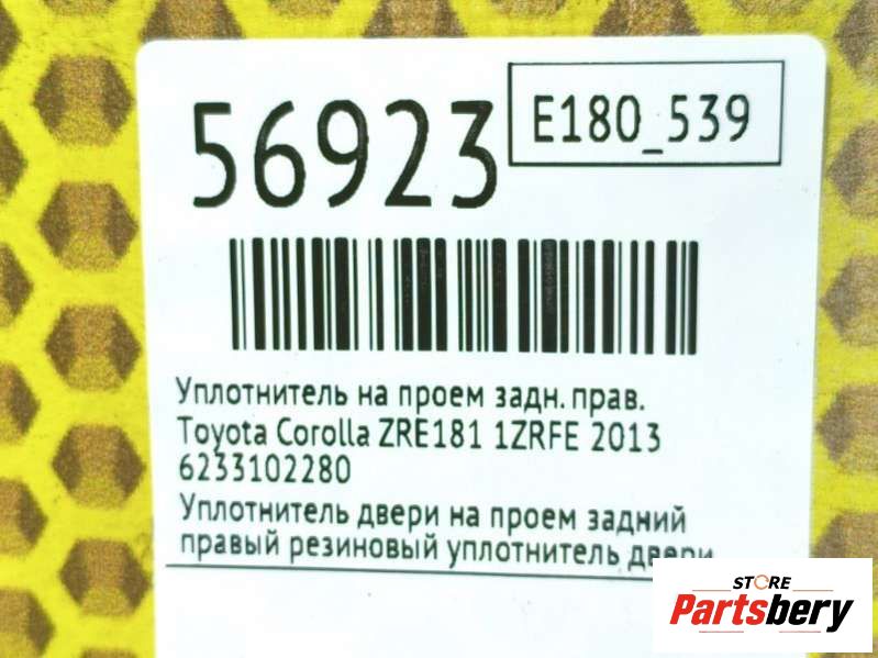 Уплотнитель на проем к Toyota Corolla ZRE181, 2013