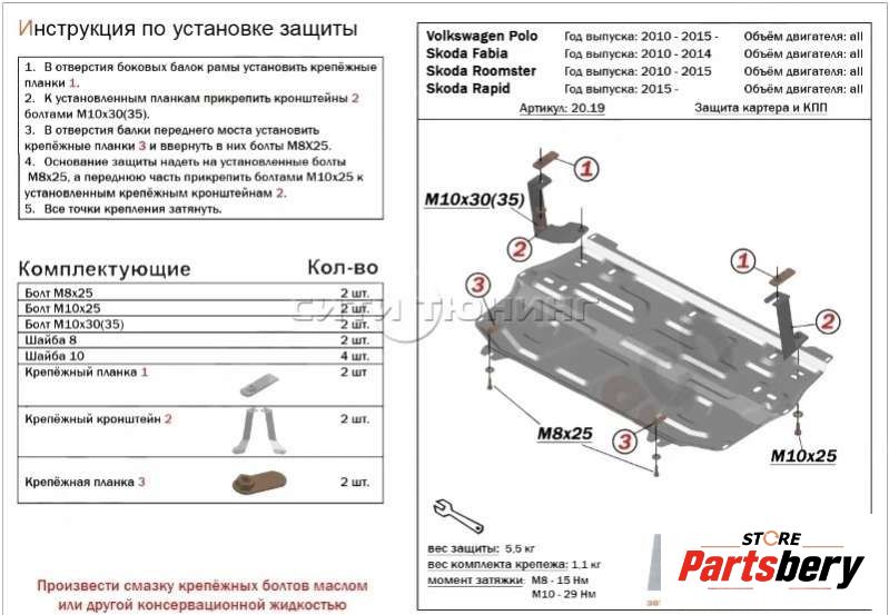 Защита двигателя к Volkswagen Fox (2005-2011) Хетчбэк 3дв., 2006