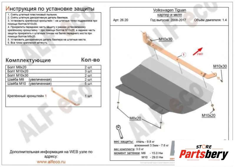 - Описание: Артикул: trb-bm04509 Защита картера и КПП для Volkswagen Tiguan (2017-)