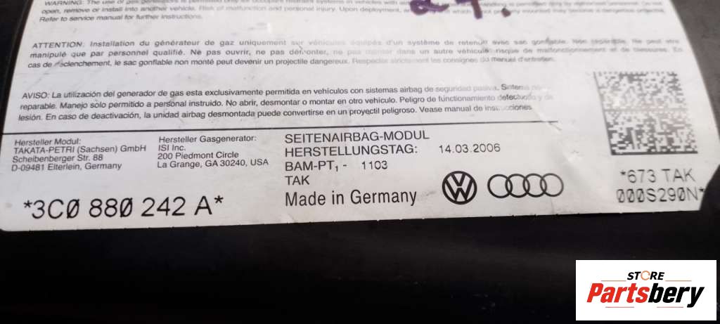 Подушка безопасности боковая (в сиденье) к Volkswagen Passat B6, 2010