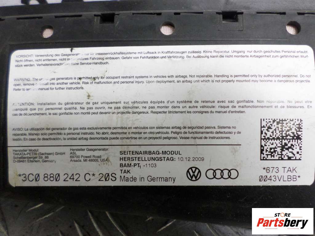 Подушка безопасности боковая (в сиденье) к Volkswagen Passat Универсал, 2010