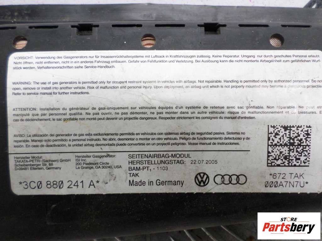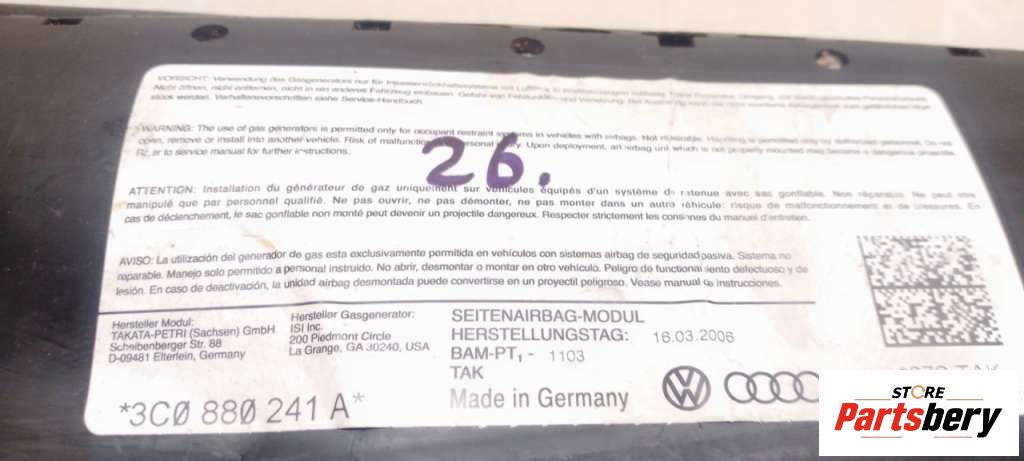 Подушка безопасности боковая (в сиденье) к Volkswagen Passat 6 (2005-2010) Седан, 2006