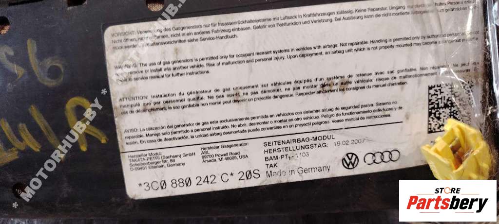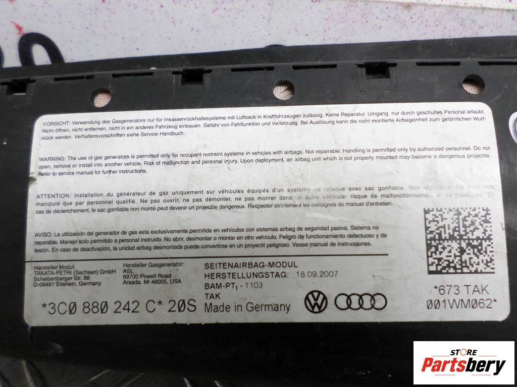 Подушка безопасности боковая (в сиденье) к Volkswagen Passat 6 2005-2010, 2007