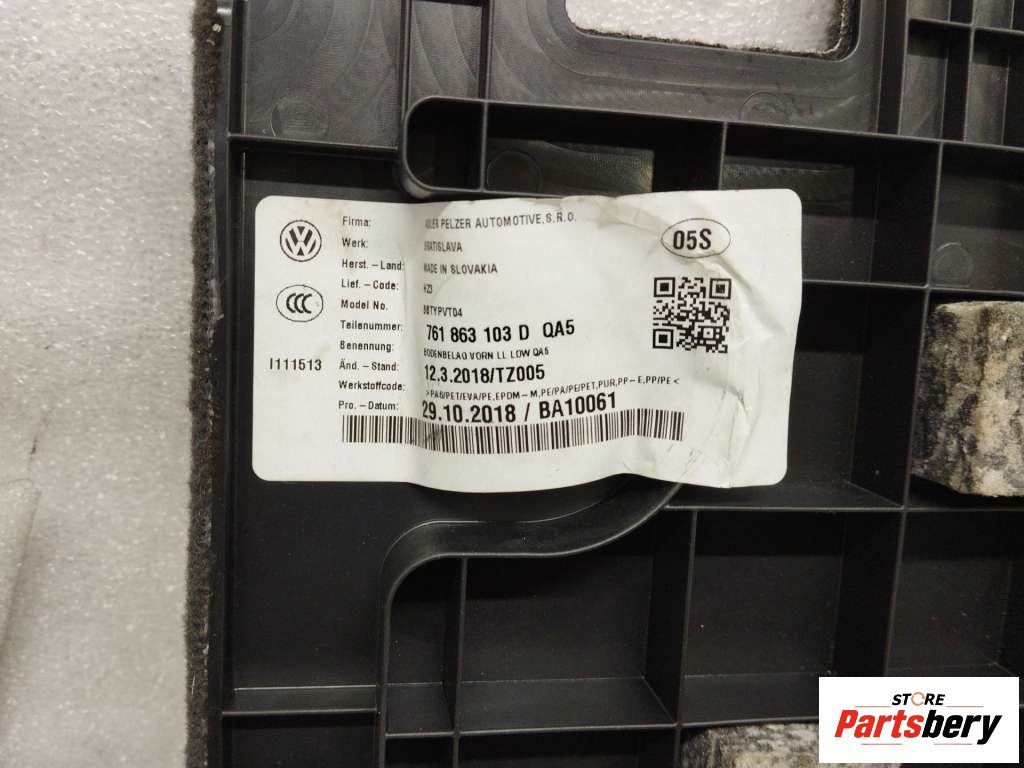 Напольное покрытие (ковролин) Volkswagen Touran (1T1) 1T1863367D9S4 к Volkswagen Touran