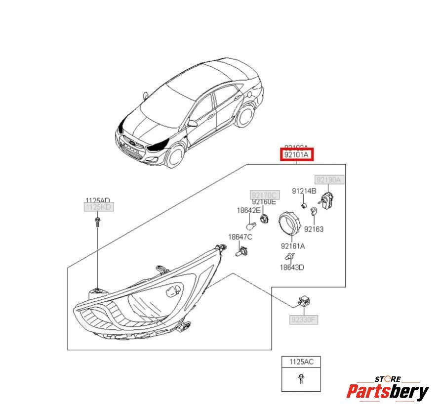 Фара правая Hyundai Solaris (RB) 92102-4L500 к Hyundai Solaris