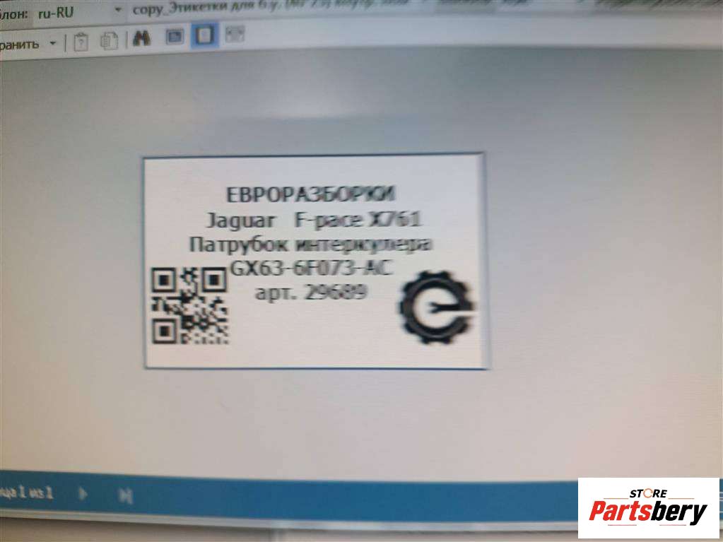 Патрубок интеркулера Jaguar F-Pace / X761 к JAGUAR F-PACE X761 09/2015 -, 2019