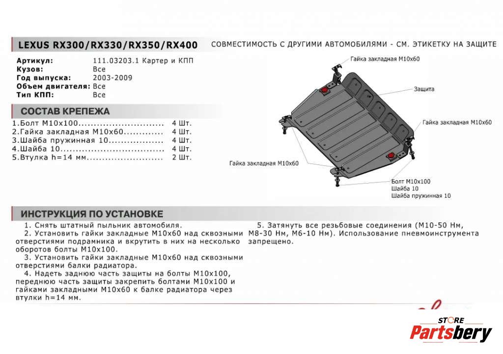 Защита двигателя к Lexus RX, 2003