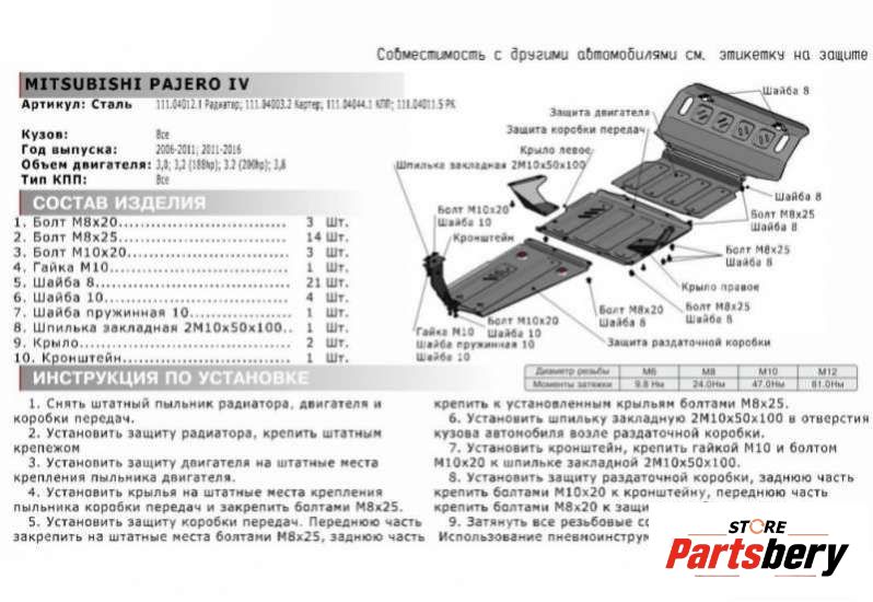 Защита двигателя металлическая к Mitsubishi Pajero 4, 2010