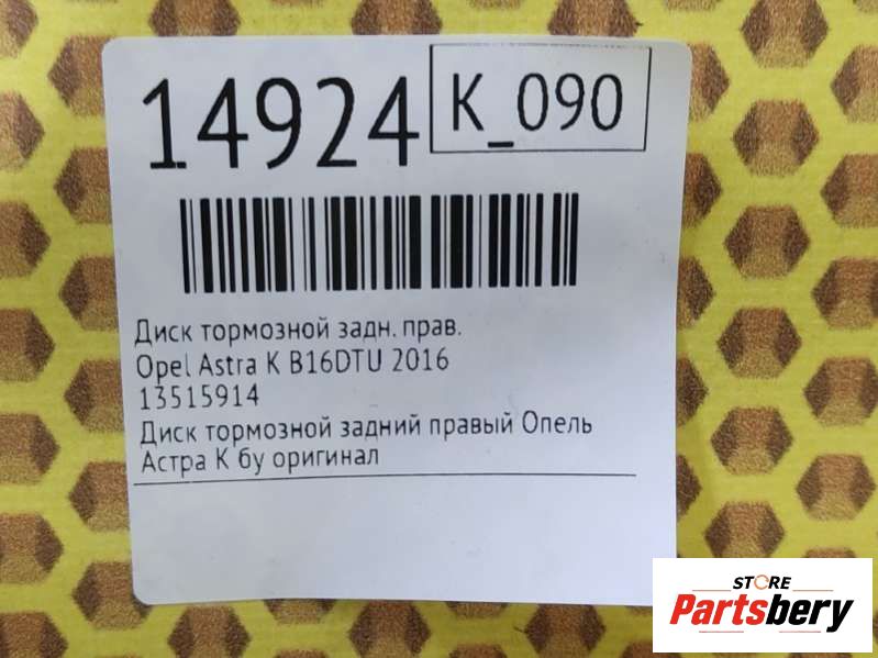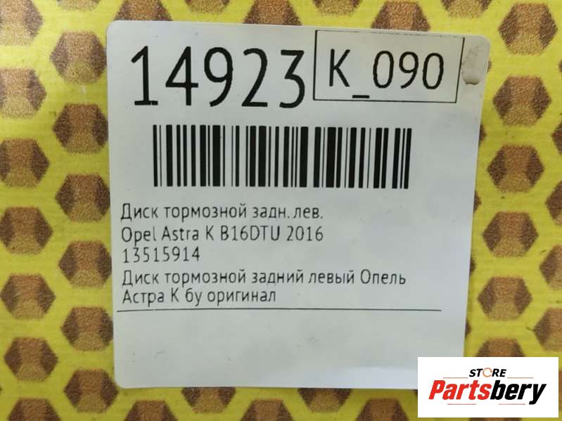 - Описание: Диск тормозной задний левый Опель Астра К бу оригинал