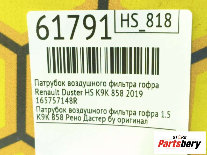Патрубок воздушного фильтра гофра к Renault Duster HSM, 2019