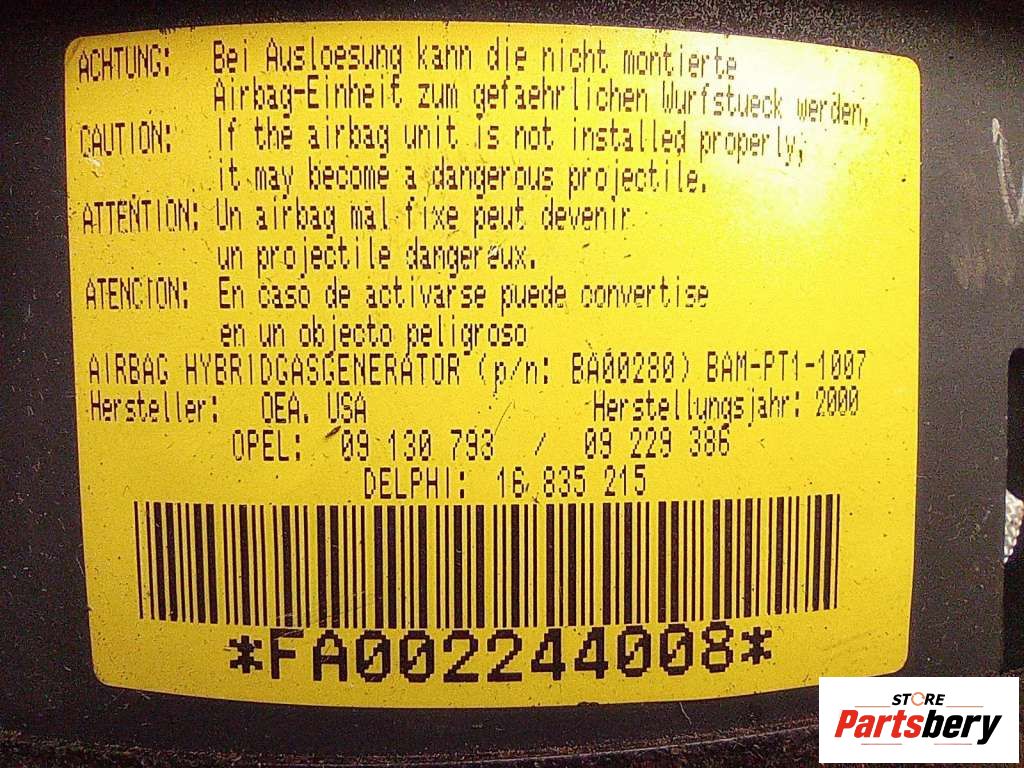 Подушка безопасности в рулевое колесо к Opel Corsa C (2000-2006) Хетчбэк 3дв., 2001