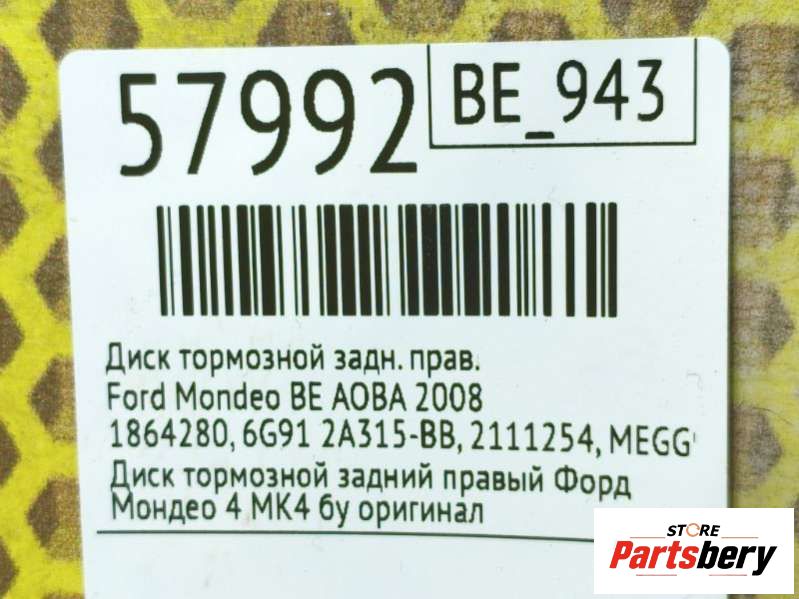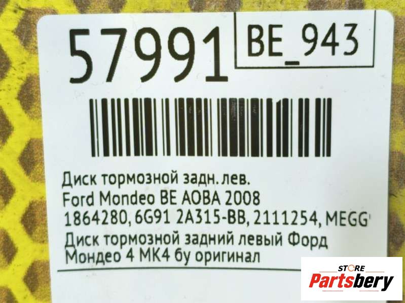 Диск тормозной к Ford Mondeo BE, 2008