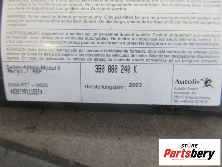 Подушка безопасности боковая (в сиденье) к Volkswagen Passat 5 2000-2005, 2002