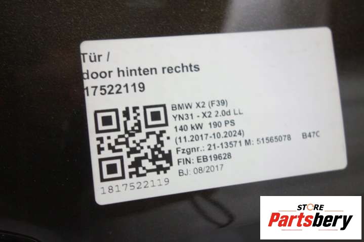 Дверь задняя правая к BMW X2 F39 1 поколение (2017-2023), 2017