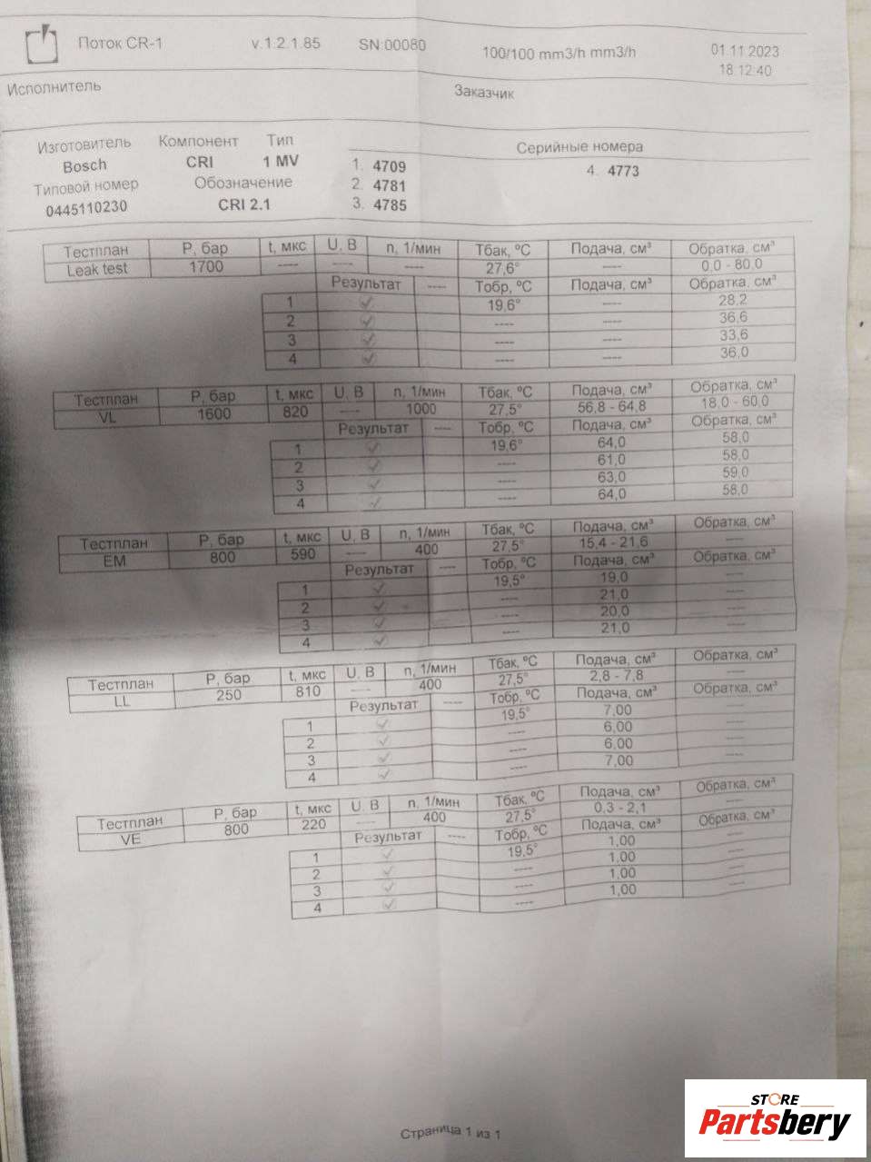 - Описание: 0445110230 4 шт. цена за 1 шт.