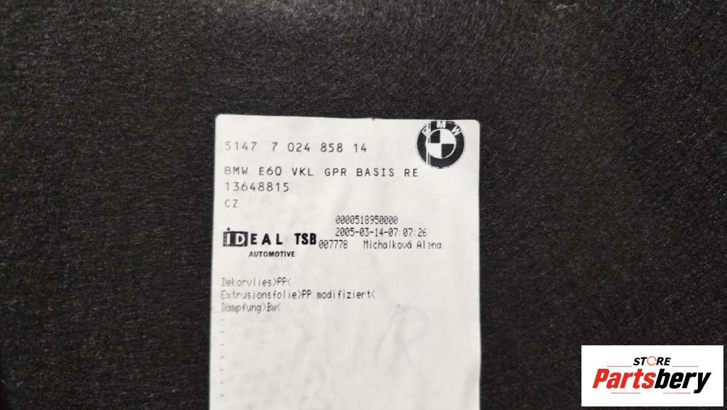 - Описание: Артикул: det-R15698 det-R15698 Обшивка багажника правая BMW 5 E60