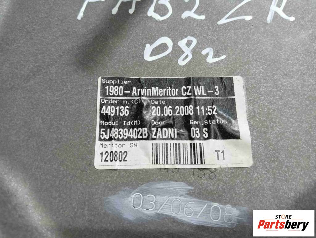 Стеклоподъемник задний правый к Skoda Fabia 2 (2007-2010), 2009