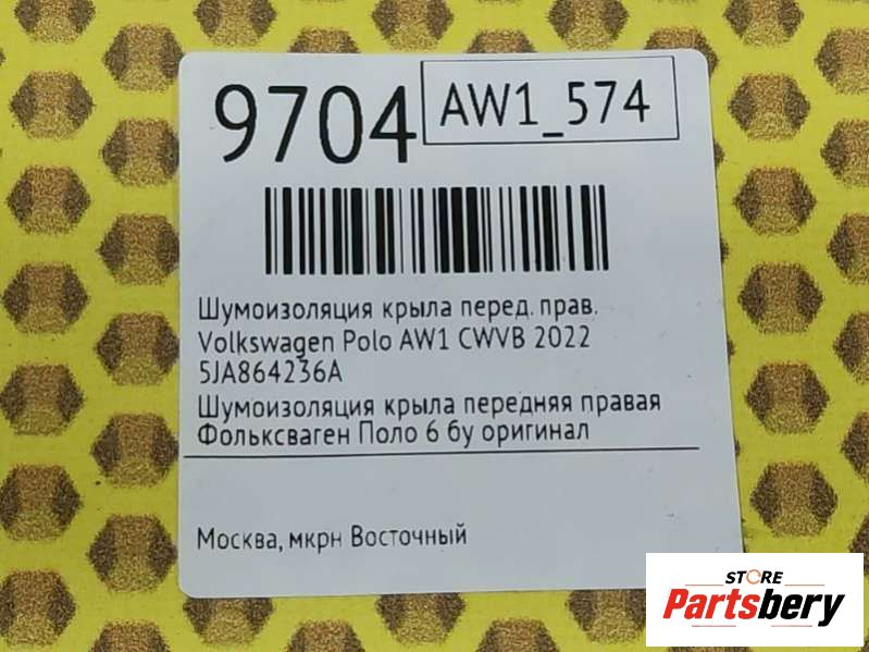 Шумоизоляция крыла к Volkswagen Polo AW1, 2022