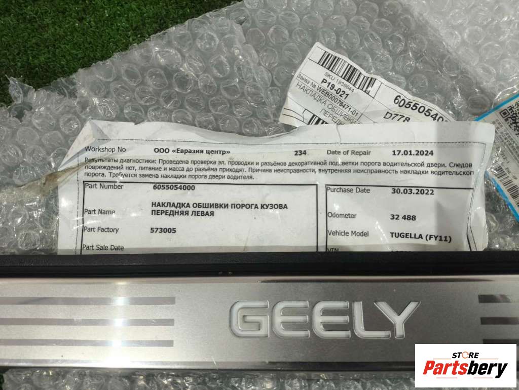 Накладка порога передняя правая (внутренняя) к Geely Tugella