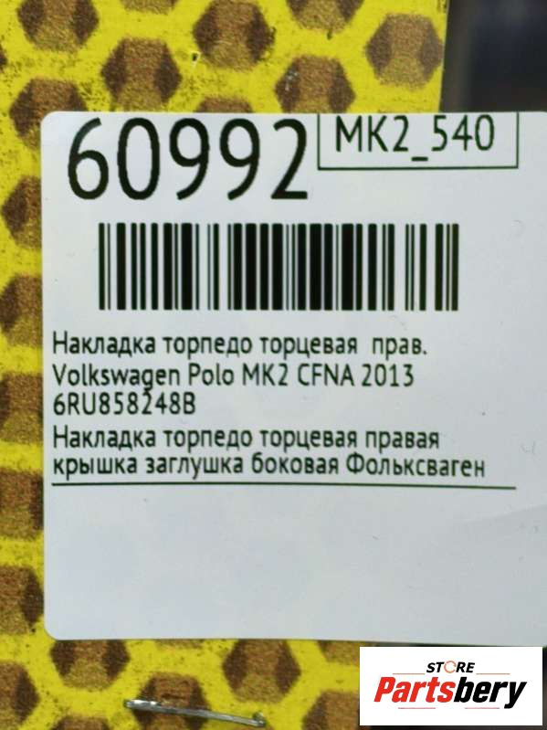Накладка торпедо торцевая к Volkswagen Polo MK2, 2013