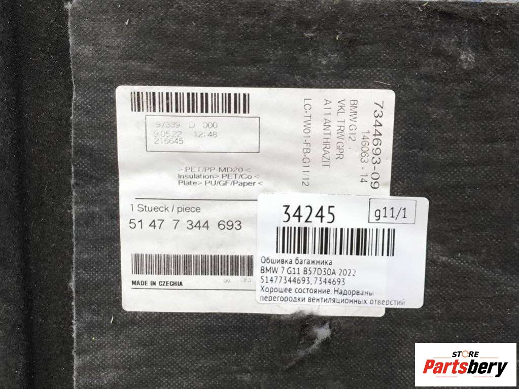 Обшивка багажника к BMW 7 G11/G12 [рестайлинг], 2022