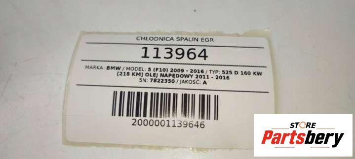 Радиатор EGR к BMW 5 F10/F11/GT F07, 2013