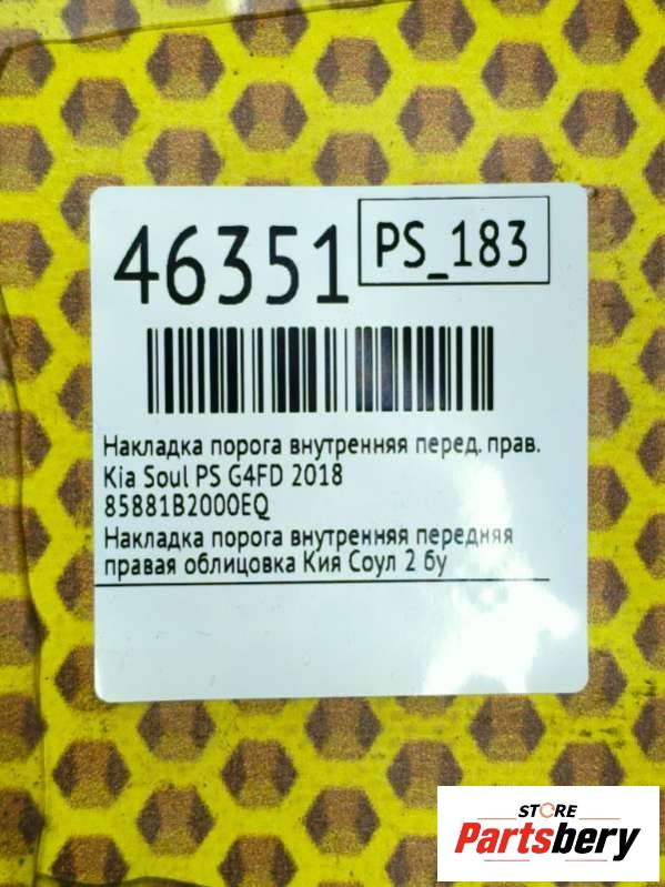 Накладка порога внутренняя к Kia Soul PS, 2018