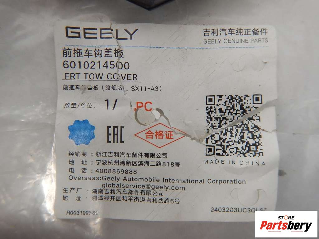 Заглушка буксировочного крюка к Geely Coolray