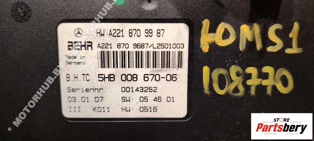 Блок управления печки/климат-контроля Mercedes-Benz A2218709987 к MERCEDES-BENZ S-CLASS W221 09/2005 - 12/2013, 2008